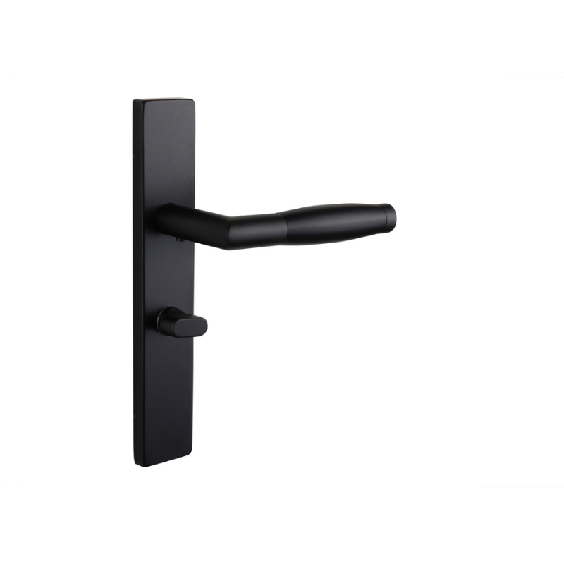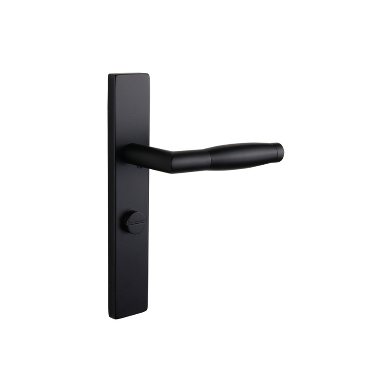 Het rechthoekige schild versterkt de strakke, moderne uitstraling en zorgt voor een naadloze afwerking van de deur. De matte zwarte afwerking voegt een stijlvol contrast toe aan diverse interieurstijlen, van minimalistisch en Japandi tot klassiek en landelijk. De geïntegreerde WC63/8 badkamersluiting biedt eenvoudige en betrouwbare privacy, ideaal voor sanitaire ruimtes.