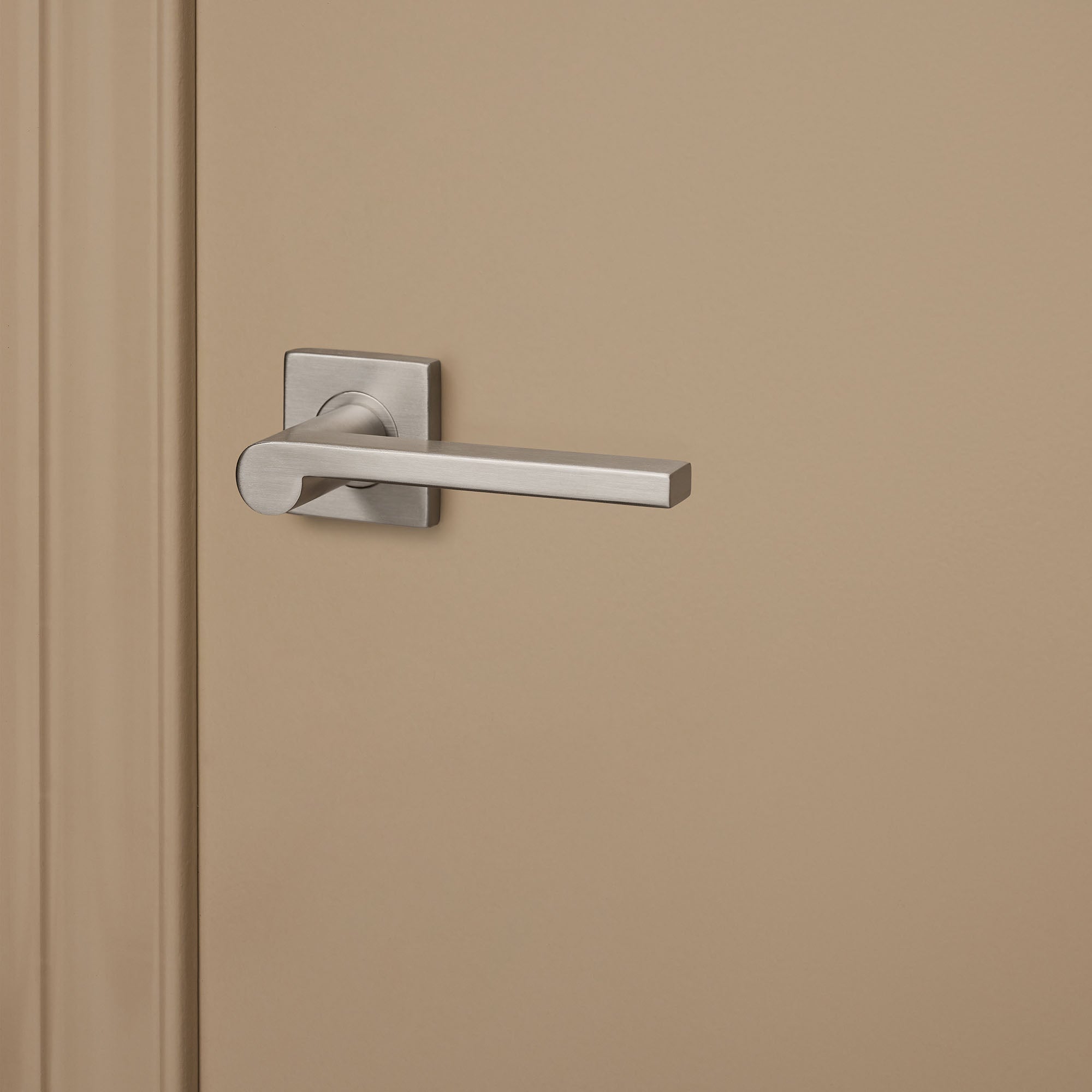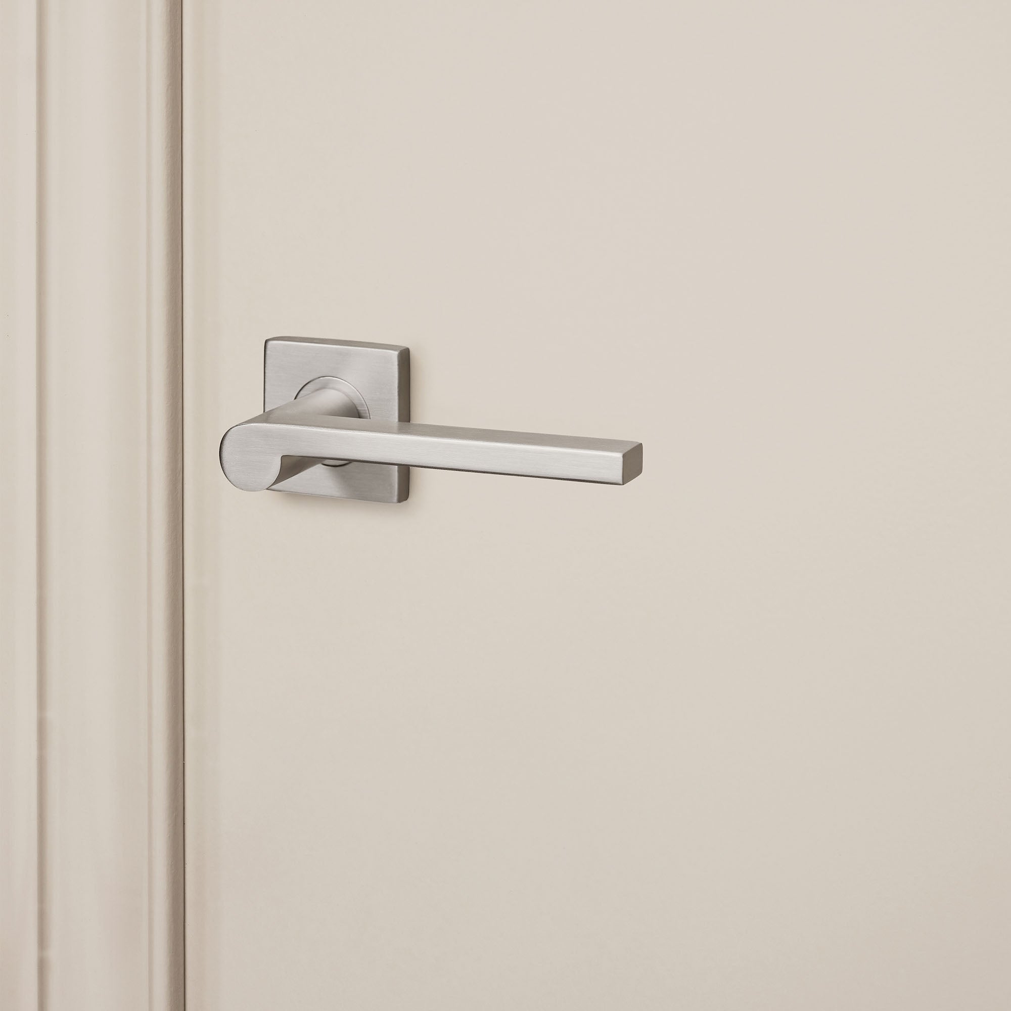 Het vierkante rozet benadrukt de rechte lijnen en zorgt voor een krachtige uitstraling. Tegelijkertijd ligt de klink prettig in de hand en voelt hij solide en betrouwbaar aan. Dit maakt de Caserta niet alleen mooi om te zien, maar ook fijn in dagelijks gebruik.