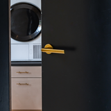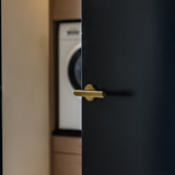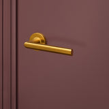 De Ragusa deurklink in mat goud met rond rozet valt meteen op door z’n lichte draai in de greep. Niet alleen mooi om te zien, maar ook fijn in het gebruik. De zachte, matte gouden afwerking geeft een warme en chique uitstraling die goed tot z’n recht komt in een modern, design of hotel chique interieur.