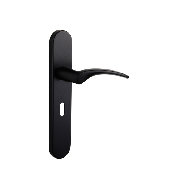 De klink ligt prettig in de hand en draait soepel dankzij de stevige basis. Het afgeronde schild met SL56 sleutelgat zorgt voor een nette afwerking en benadrukt het elegante ontwerp. Het mat zwarte oppervlak is slijtvast en eenvoudig schoon te houden, waardoor de klink er langdurig mooi uit blijft zien.