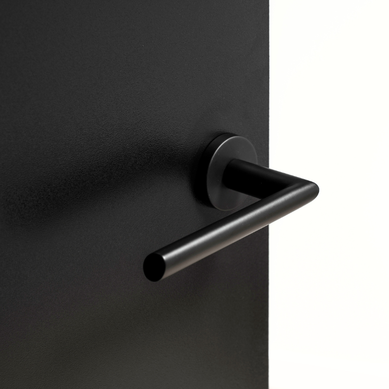 Deze klink is gemaakt van duurzaam RVS met een slijtvaste matzwarte coating. Het ontwerp is niet alleen een lust voor het oog, maar ook prettig in gebruik. Het ronde rozet zorgt voor een rustige uitstraling op de deur.