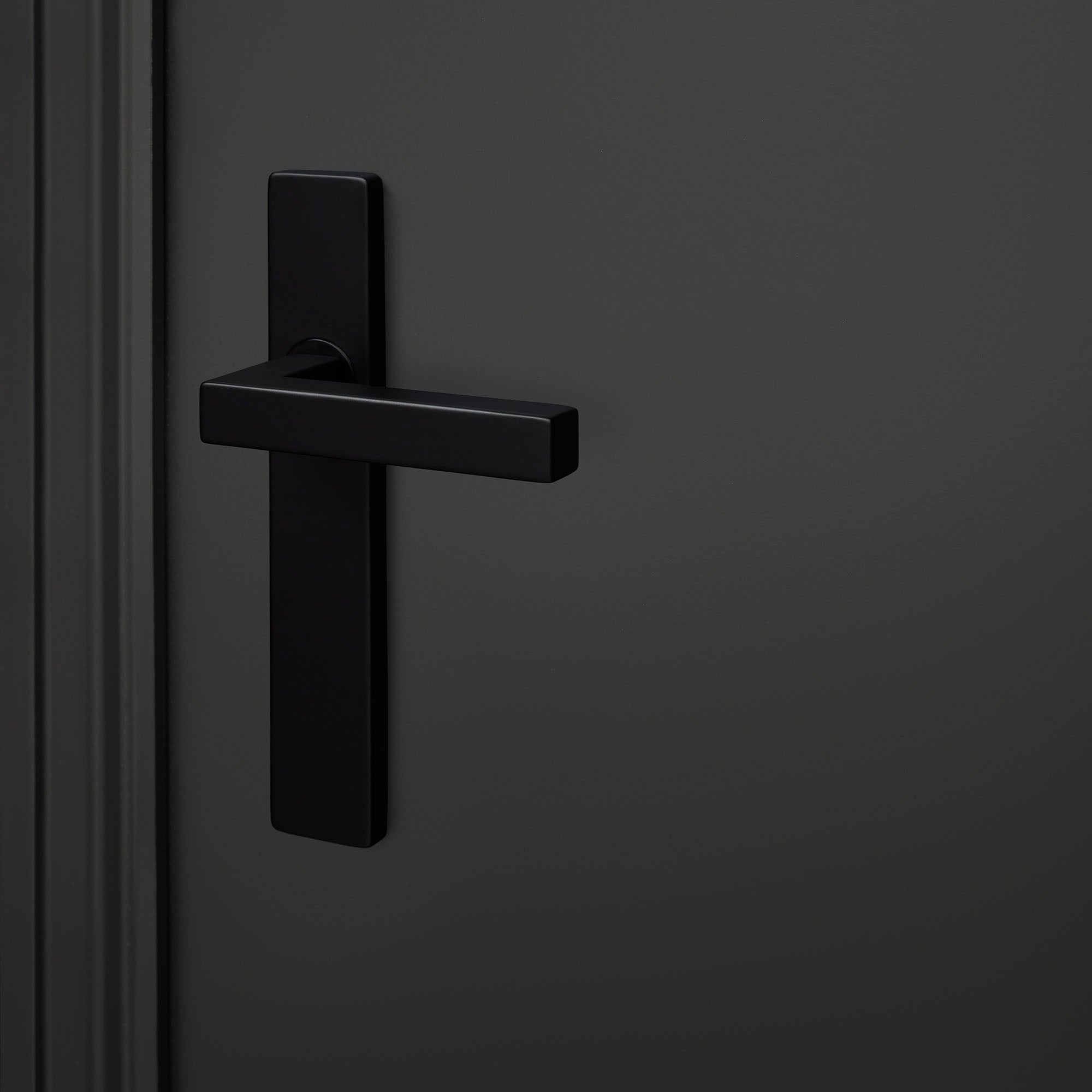 Moderne deurklink zwart met rechthoekig schild