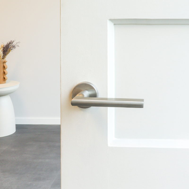 Deze deurklink is gemaakt van duurzaam roestvrij staal: slijtvast, onderhoudsvriendelijk en geschikt voor dagelijks gebruik. Het ronde rozet zorgt voor een verzorgde afwerking en maakt deze klink toepasbaar in stijlen zoals Scandinavisch, minimalistisch, basic of modern.