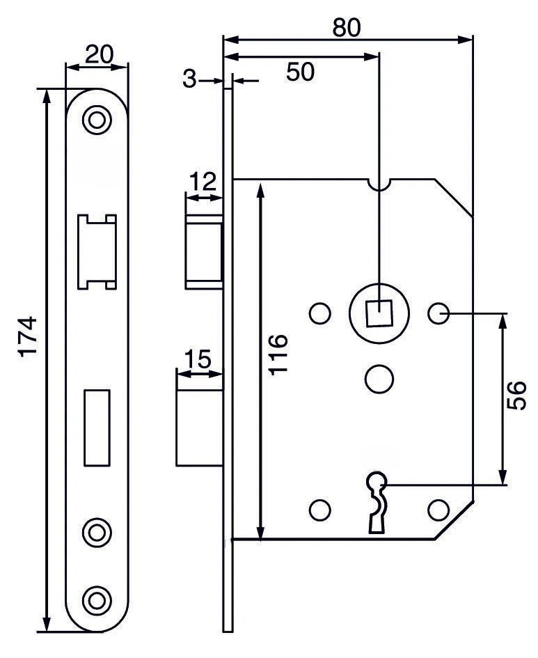 Dit slot heeft een standaard doornmaat van 50 mm, wat gebruikelijk is voor de meeste Nederlandse deuren. Controleer dit voor de zekerheid even bij je huidige deur. Let er bij de aanschaf van je deurbeslag op dat je kiest voor de steekmaat SL56 (56 mm tussen het deurklink en het sleutelgat). Zo weet je zeker dat je schilden of rozetten perfect op je nieuwe dag en nachtslot passen.