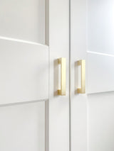 De strakke, hoekige vorm is een modern contrast tegen de zachte, warme kleur. Dit maakt hem perfect voor een high-end renovatie van je keuken of dressoir. De vrij grote greep kenmerkt zich door een robuuste uitstraling, waar overigens perfect te combineren valt met een blokgreep deurklink in jouw interieur!