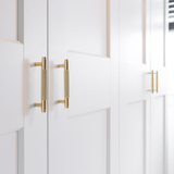 Soms vraagt een meubelstuk om een hangreep die verder gaat dan subtiliteit. Deze royale handgreep in mat goud, met een indrukwekkende lengte van 224 mm, is speciaal ontworpen voor wie durft te kiezen voor een krachtig design. Waar kleinere grepen soms wegvallen op grote kastdeuren, zorgt deze ribbelhandgreep met zijn riante afmeting voor een gebalanceerd en zelfverzekerd beeld. De matte goudtint straalt een ingetogen rijkdom uit, waardoor je interieur direct een exclusieve uitstraling krijgt zonder dat het de overhand neemt.