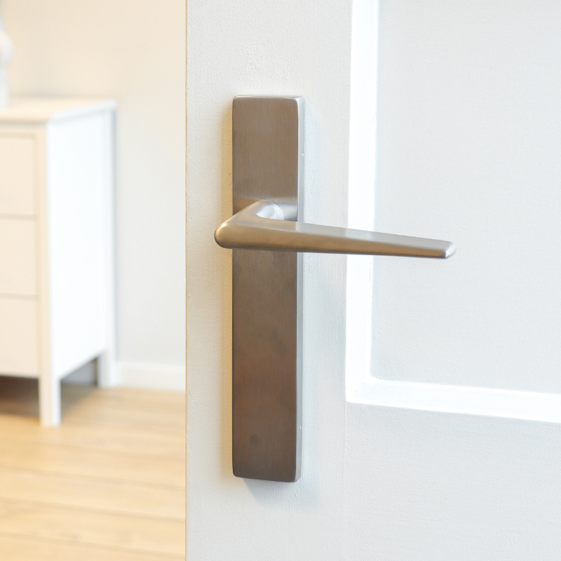 Deze uitvoering is geschikt voor binnendeuren met een standaard slot. Het schild dekt oude boorgaten netjes af en sluit strak aan op de deur. De geborstelde RVS afwerking is duurzaam, krasvast en gemakkelijk te onderhouden.