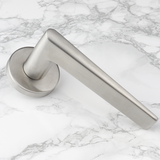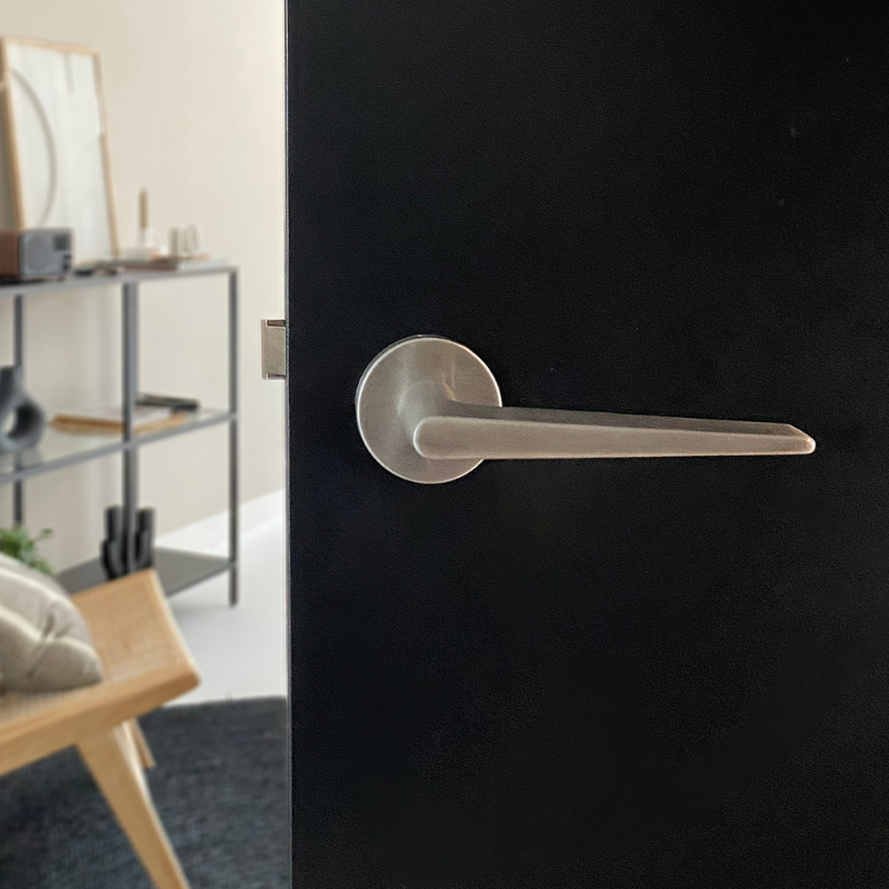De Modena deurklink in RVS met rond rozet brengt elegantie en eenvoud samen in één ontwerp. Met z’n slanke, taps toelopende vorm en geborstelde RVS afwerking past deze klink moeiteloos in Scandinavische, minimalistische en moderne interieurs.