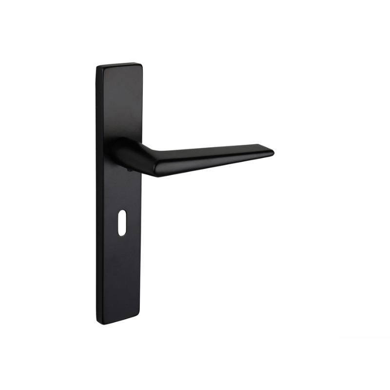 Deze uitvoering is geschikt voor binnendeuren met een standaard slot op 56 mm hart-op-hart. Het schild dekt oude boorgaten netjes af en zorgt voor een strak, verzorgd geheel. De matzwarte coating is slijtvast en eenvoudig te onderhouden. Geschikt voor woningen en projecten waar uitstraling telt.