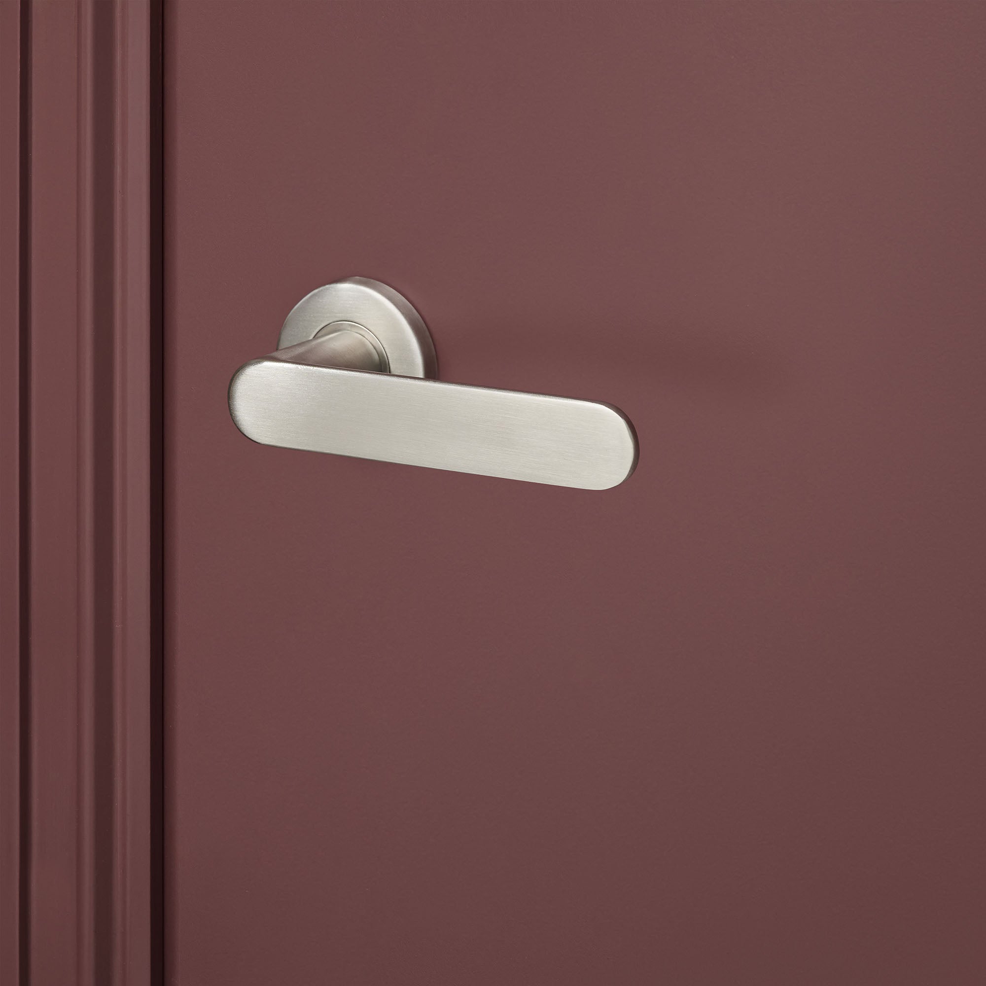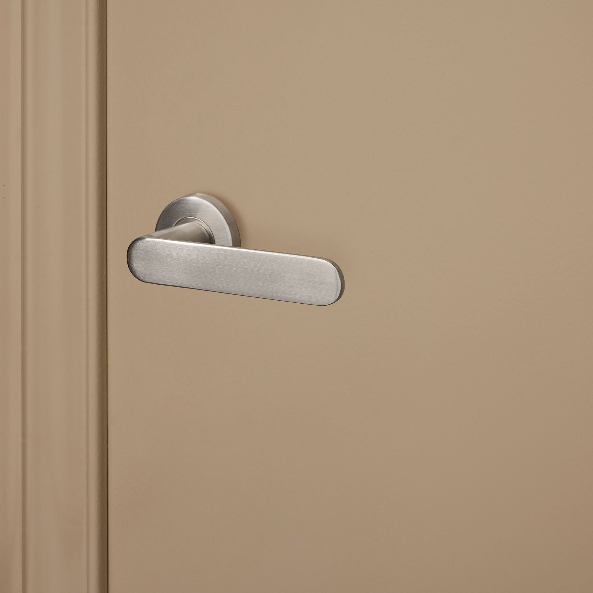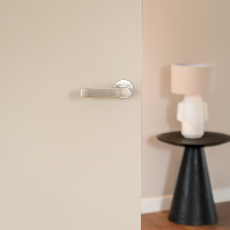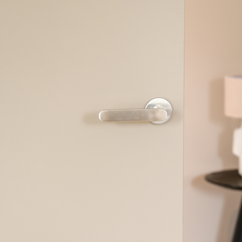 De Novara is gemaakt van hoogwaardig roestvrij staal en voorzien van een krasvaste coating, wat zorgt voor een lange levensduur en eenvoudig onderhoud. Het ronde rozet zorgt voor een zachte, harmonieuze afwerking die de deur een verfijnde uitstraling geeft.