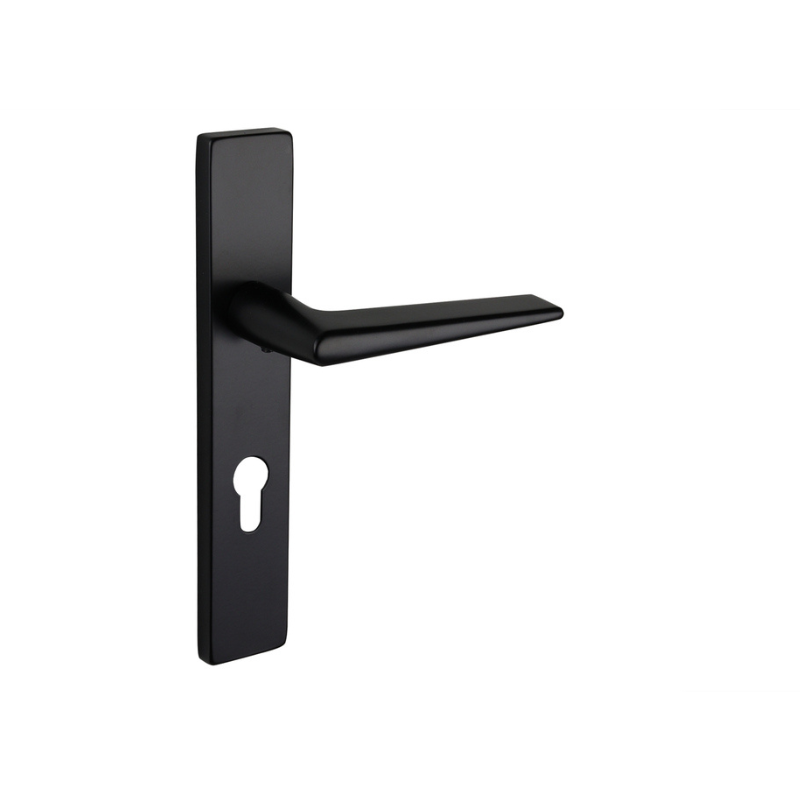 Modena deurklink zwart met rechthoekig schild PC72