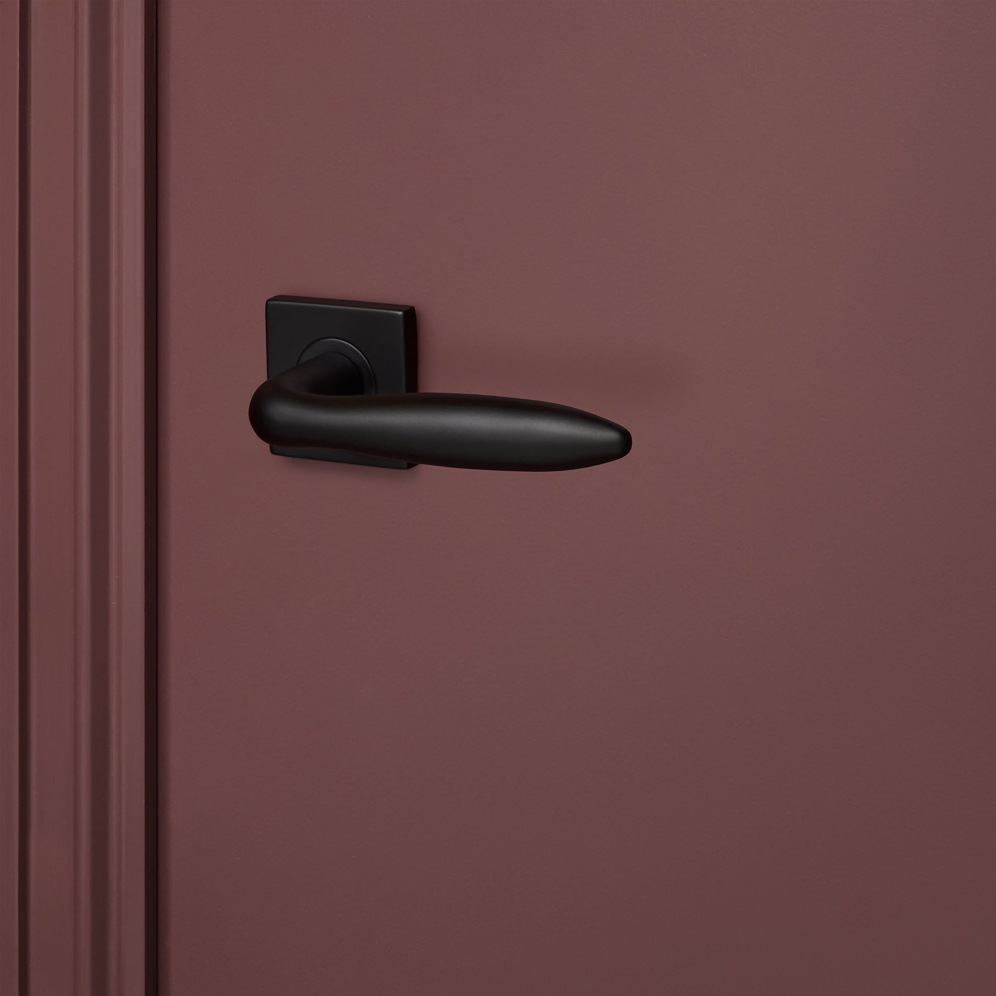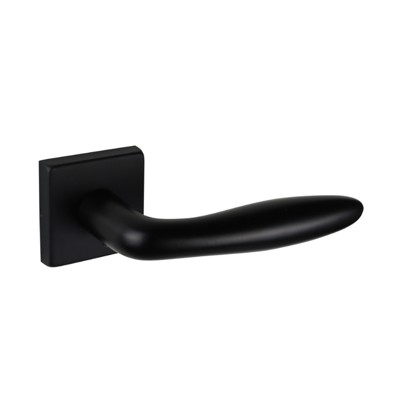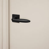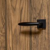 De Pratona deurklink met vierkant rozet valt op door zijn elegante, sigaarvormige ontwerp in een diepe matzwarte afwerking. De combinatie van ronde vormen en een strak vierkant rozet zorgt voor een spannend contrast dat klasse en stijl uitstraalt.