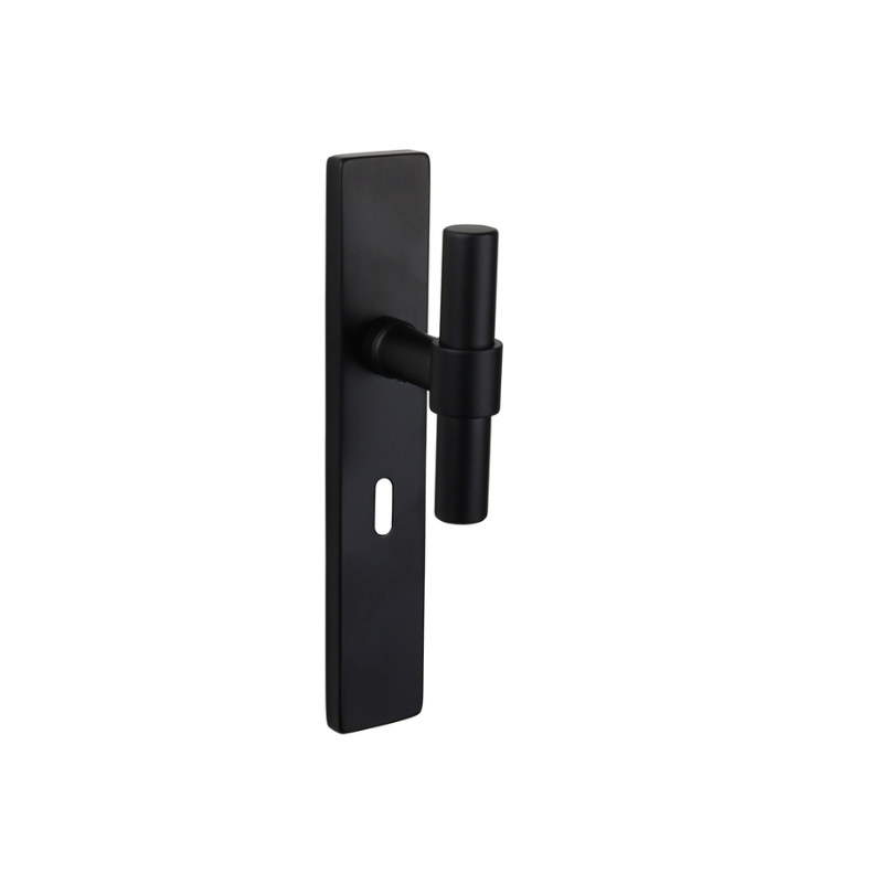 Deze uitvoering is geschikt voor binnendeuren met een sleutelgat op 56 mm hart-op-hart. Het sleutelgat is netjes geïntegreerd in het schild, waardoor het geheel strak blijft. De matzwarte afwerking is slijtvast en combineert makkelijk met andere zwarte elementen in huis.