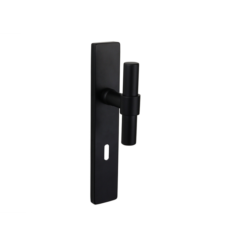 Deze variant is geschikt voor binnendeuren met een slot op 72 mm. Het sleutelgat is netjes in het schild verwerkt, waardoor alles één geheel vormt. De klink is gemaakt van sterk RVS met een slijtvaste, matzwarte afwerking: mooi én praktisch dus.