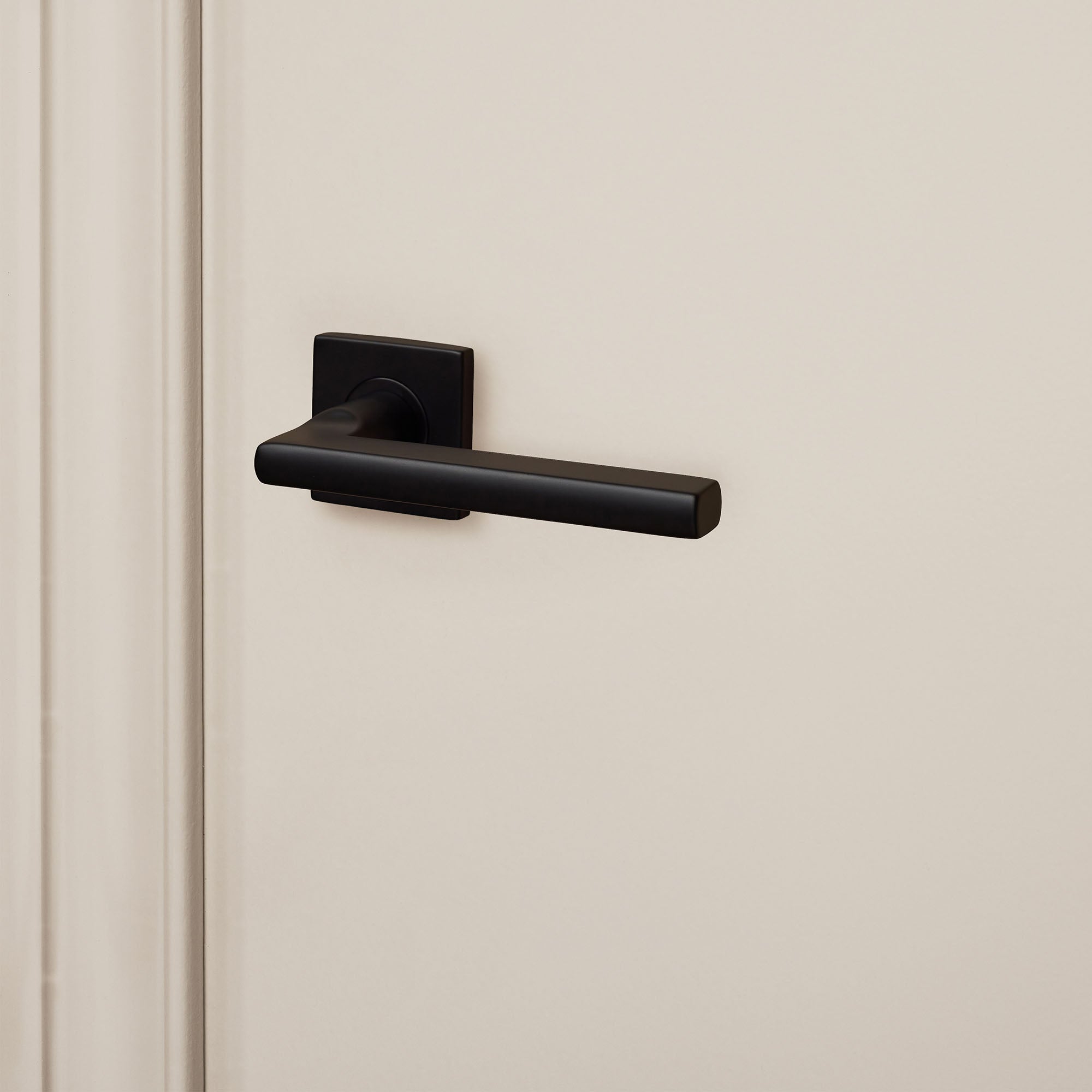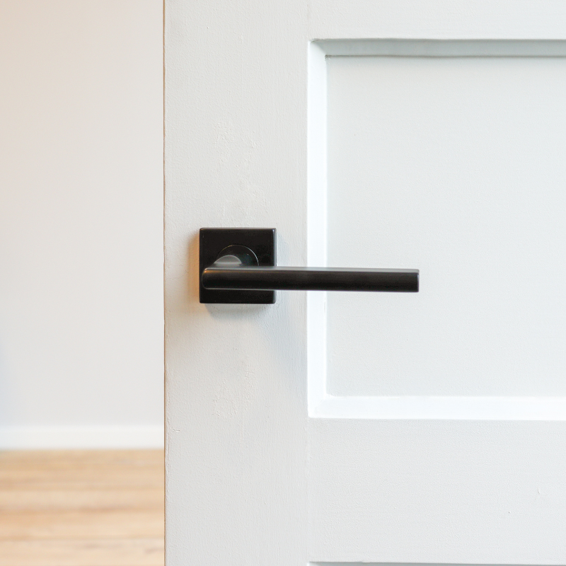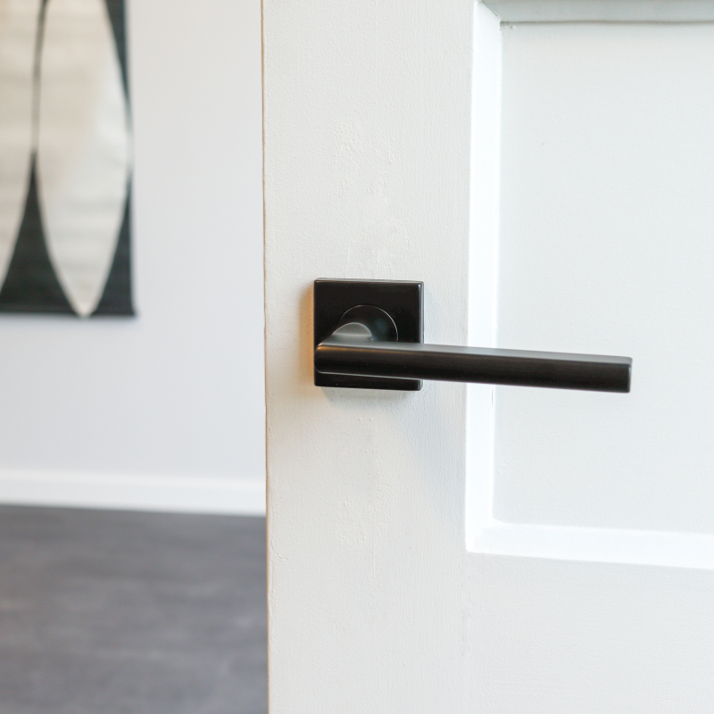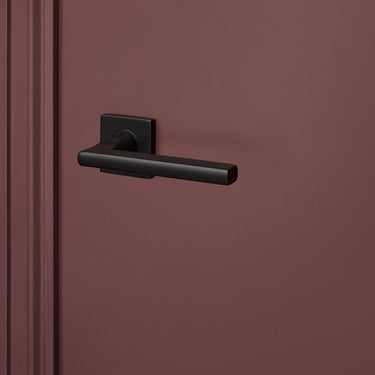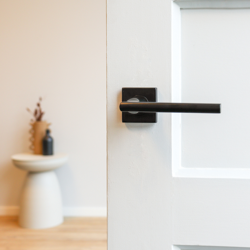 Wat deze klink bijzonder maakt, is de balans tussen het strakke, vierkante rozet en de zachte, afgeronde vormen van de greep. Een ontwerp dat moeiteloos aansluit bij uiteenlopende woonstijlen: van industrieel en Scandinavisch tot Japandi, minimalistisch of hotel chique. Het zwart zorgt voor een krachtig accent, terwijl de vorm rust brengt.